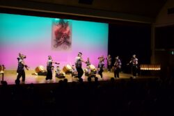 アンコールでは、【富士見音頭】【三芳音頭】【炭坑節】の盆踊りをお届けいたしました。日本のおどり文化協会富士見の皆さまに舞台上で踊って頂きました。盆太鼓は、各団体の代表者でリレー方式で打ち繋ぎました。