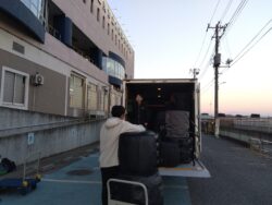 太鼓機材を片付け。体育館3階からトラックへ積み込むので、皆んなで協力してリレー形式で。遊び心がありまくり、でももう手慣れたもので、しっかりと頼もしい子どもたちでした。