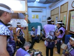 前回の稽古で盆太鼓のテストに合格した
